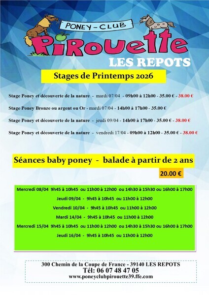 Merci de bien vouloir me contacter pour connaître les disponibilités sur les différents stages et séances baby poney.
